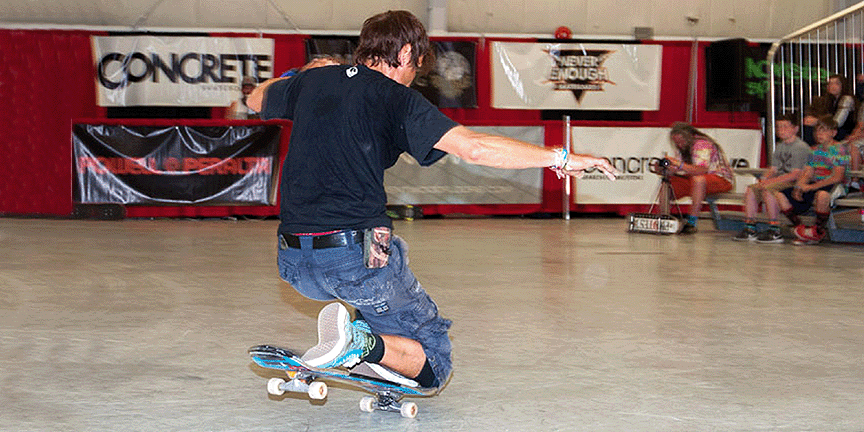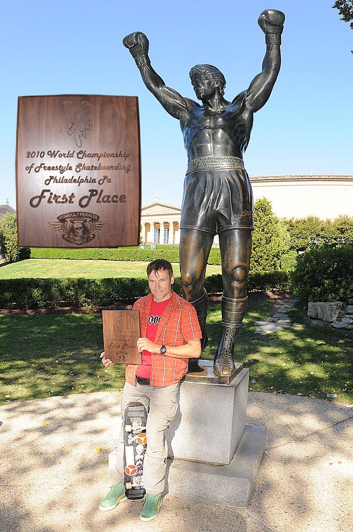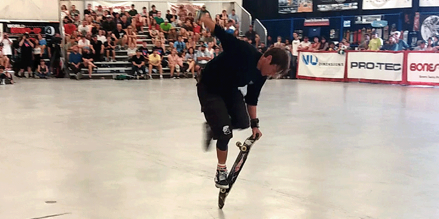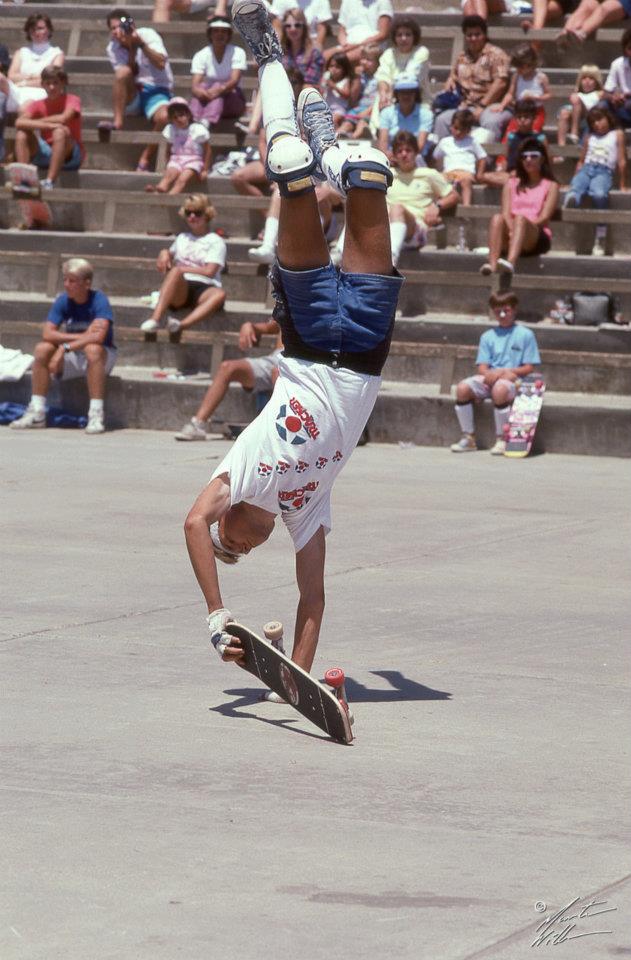 1986 : Quitte son emploi et devient champion du monde au « Transworld Skateboard Championship » au Canada. Champion du monde amateur.