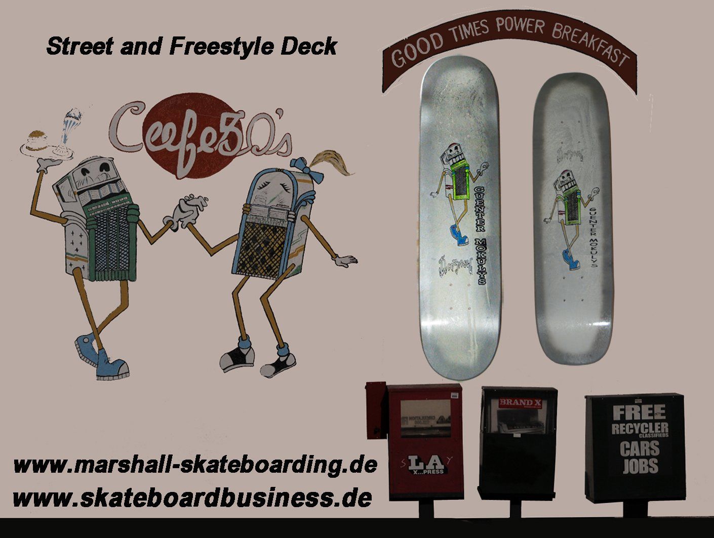1987 : Diverses compétitions, apparitions à des spectacles et le premier livre allemand sur le skateboard de Guenter Mokulys.
