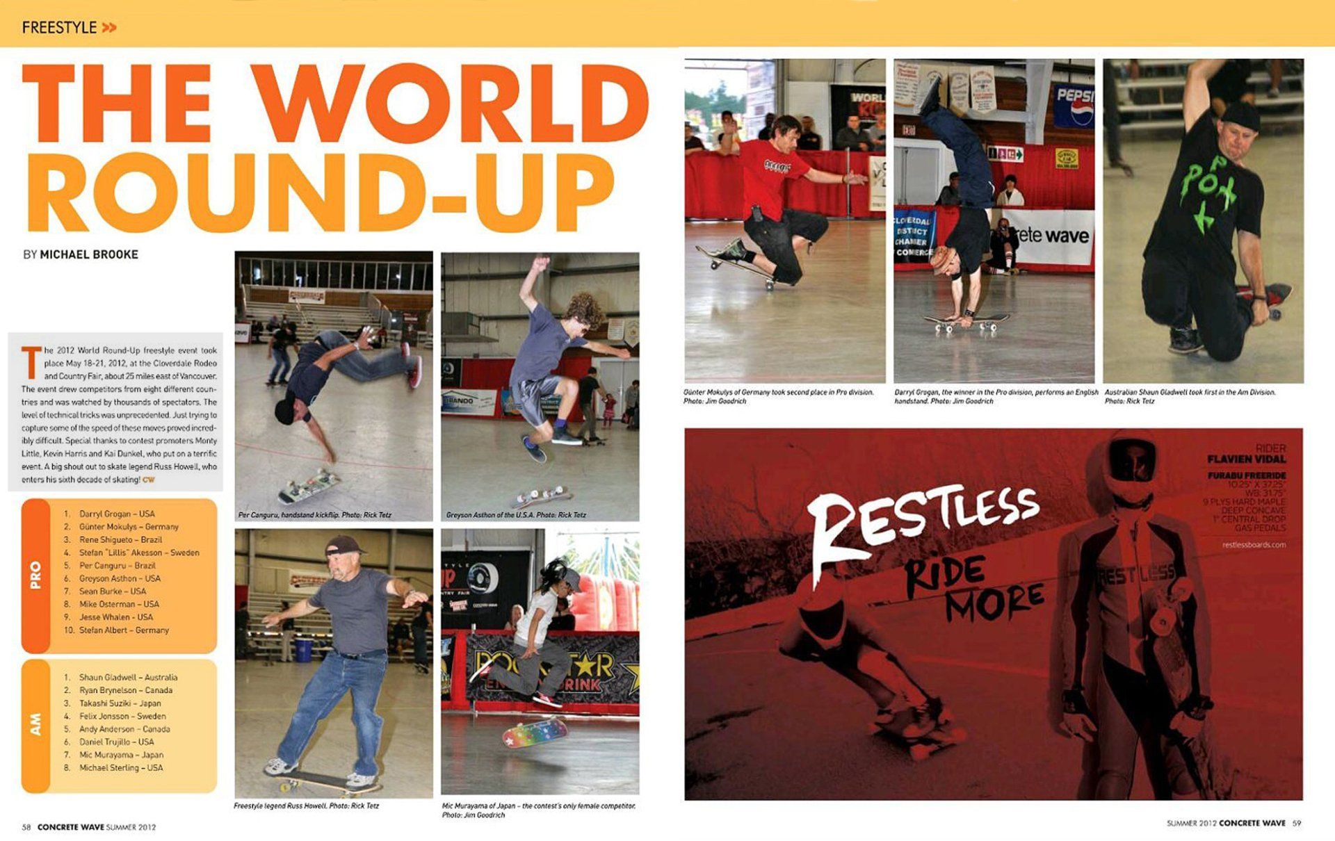 2012 : Championnats du monde à Cloverdale, Canada. Formation à San Jose, Hollywood, Venice Beach. Spectacle pour RedBull. Maîtres du skateboard. Modèle professionnel.